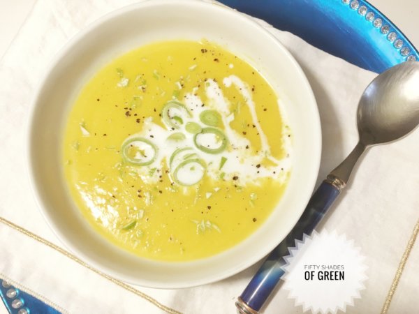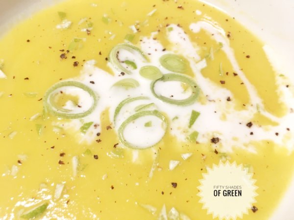A levest karikákra vágott poréval, és 1-2 kanál extra kókusztejjel tálalom.