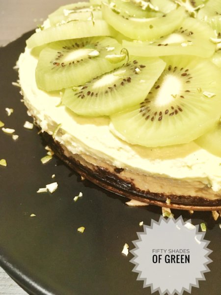 Ha szépen megdermedt a tortám, a felkarikázott kivivel és a reszelt lime héjával díszítem.
